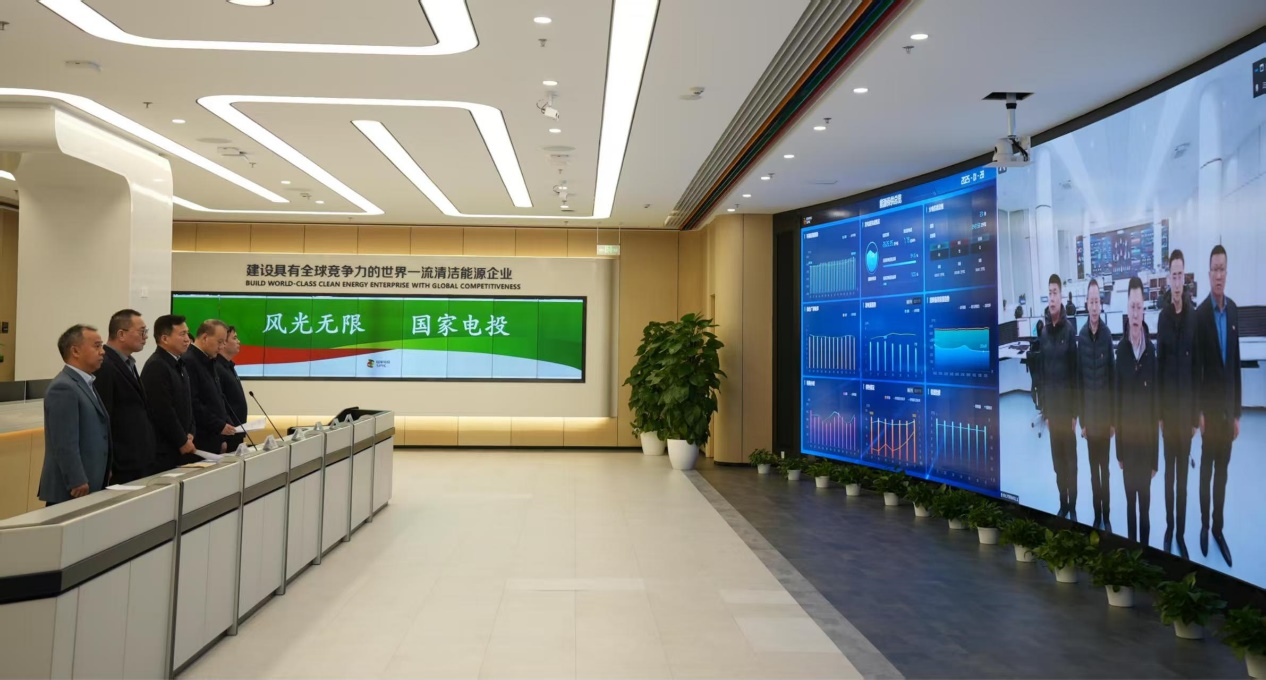 1月28日,除夕当天15时,国家电投集团党组书记、董事长刘明胜来到集团总部安全运行监控大厅看望慰问现场值班值守人员,视频连线黄河公司羊曲水电站、东北公司阜新电厂、云南国际生产运营中心(富源西风电)、四川公司甘孜新那伽光伏电站、国核示范、内蒙古公司白音华煤矿及铝电公司青铜峡铝业集控中心现场生产运行值班值守人员,详细了解各单位值班值守情况,并代表集团党组向大家致以新春的美好祝福。