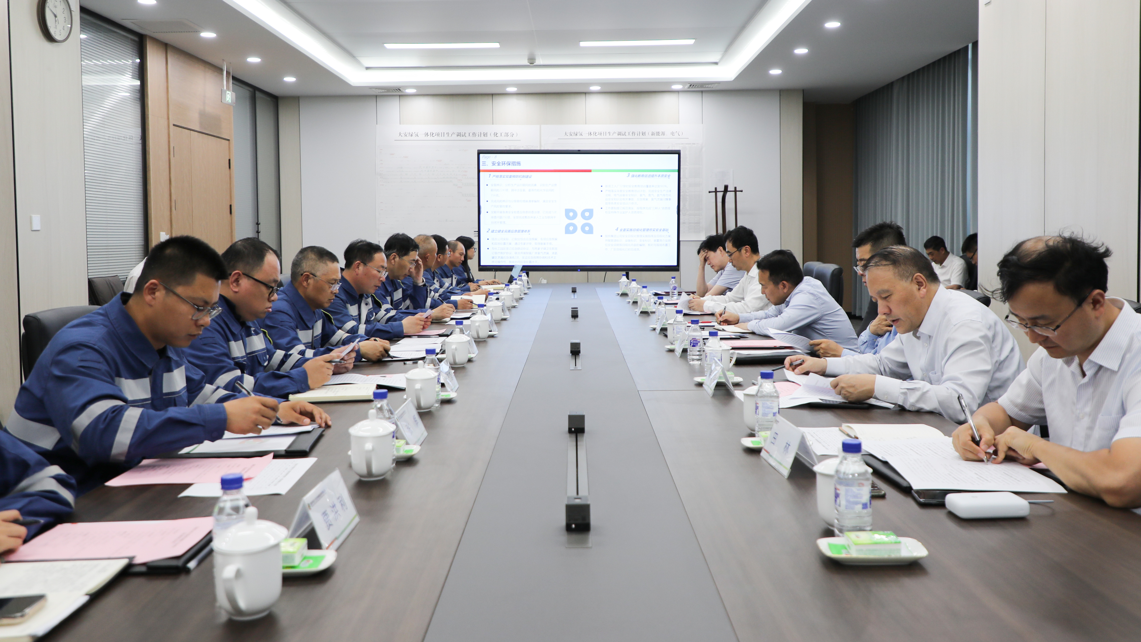 在吉期间,刘明胜到吉电股份大安绿氢公司、吉电新能源公司查干湖风电场调研,实地察看大安项目生产现场及查干湖风电区域维检中心、员工创新工作室,主持召开基层员工座谈会,征求一线职工对集团系统党员、干部贯彻中央八项规定及其实施细则精神的意见建议,对企业发展取得的成效予以肯定。他强调,要坚持安全第一和质量第一,强化战略定力和安全保障,实现专业人干专业事。要开展好产品绿色认证工作,实事求是打造产业品牌。要做好工程项目“回头看”,开展标准化体系设计,支撑批量化复制绿色氢基能源项目,打造核心竞争力。要适当提升人才储备,充分发挥项目孵化器作用,为产业高质量发展夯实基础。要加快绿色氢基能源平台建设,做好谋篇布局,尽快将示范优势打造为领先优势。要加强党的建设、党风廉政建设,发挥示范带头作用,为高质量发展注入强劲动力。同时,要坚持成本领先,以安全预防为主,坚持收益标准,瞄准重点方向,保持发展势头,助力集团建设世界一流清洁能源企业。