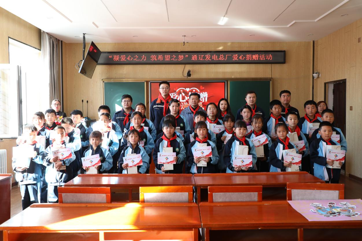 10月23日,国家电投集团内蒙古公司通辽发电总厂志愿者到通辽市科尔沁区丰田镇中心小学开展“映山红”助学活动,为28名受助学生送去秋日的温暖与希望。