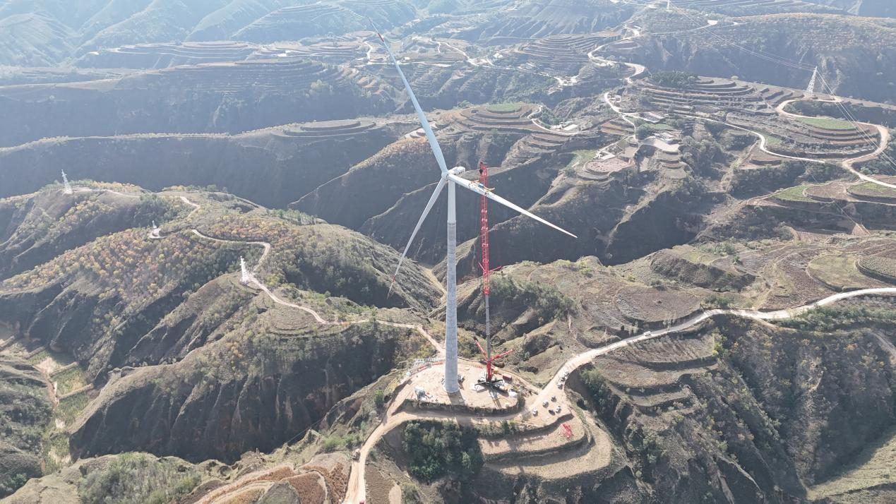 作为国家电投集团在陕北地区布局清洁能源的重要一环,项目采用“预应力混凝土+钢混塔筒”设计,塔筒高度160米,单机容量6.25兆瓦,是目前区域内在建高度最高、单机容量最大的风电机组。项目全容量投产后,预计年上网清洁电力1.09亿度。